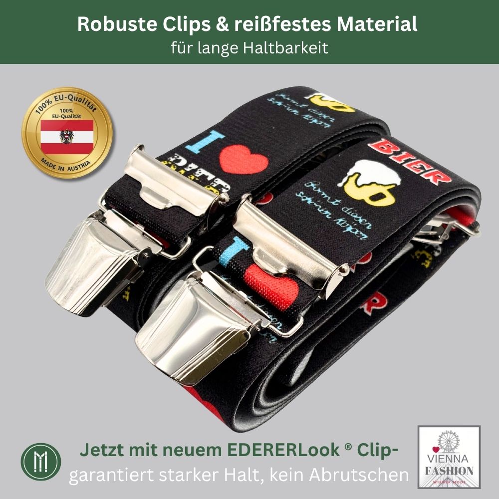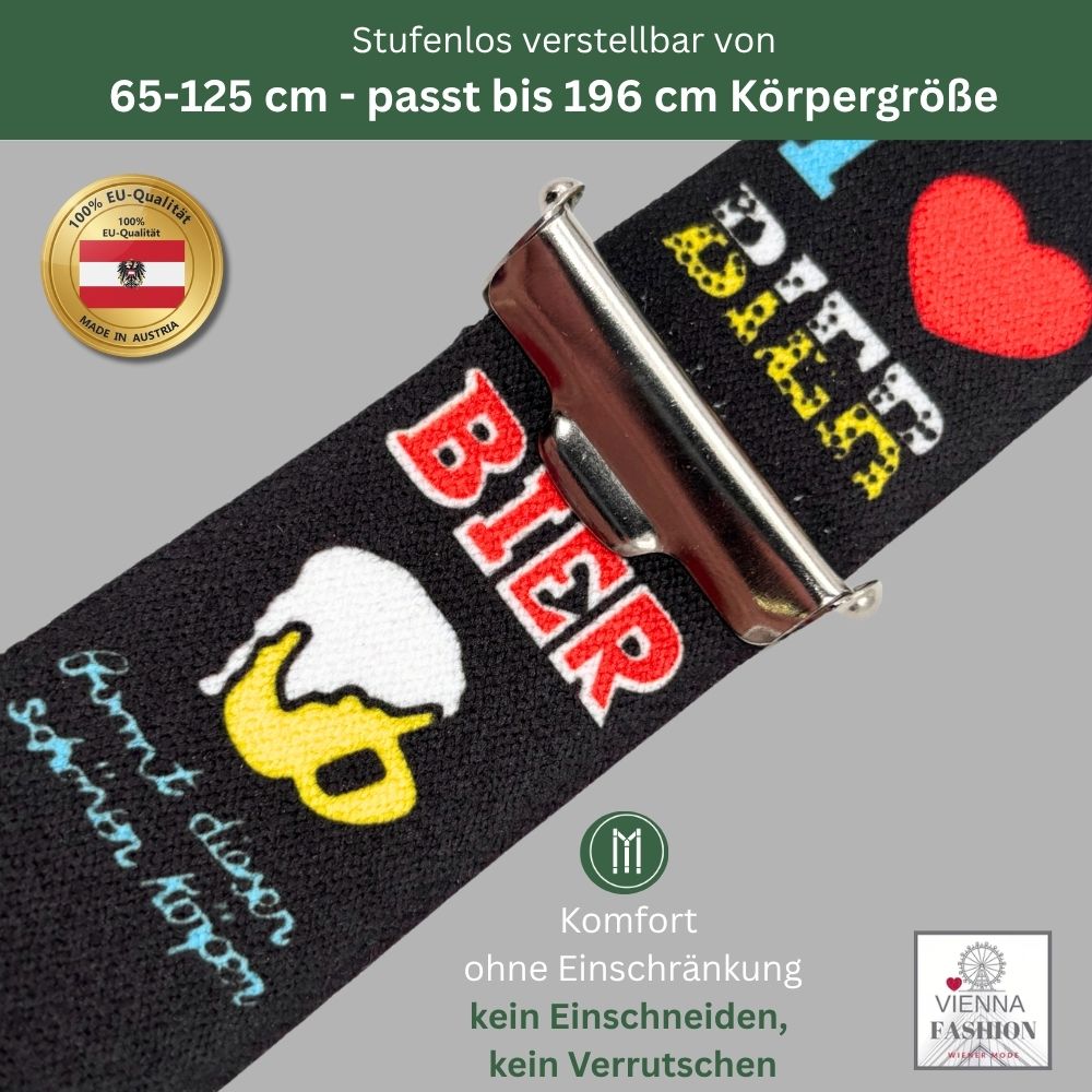 Die Statement Hosenträger "I love Bier" sind der Hingucker bei jedem Outfit.